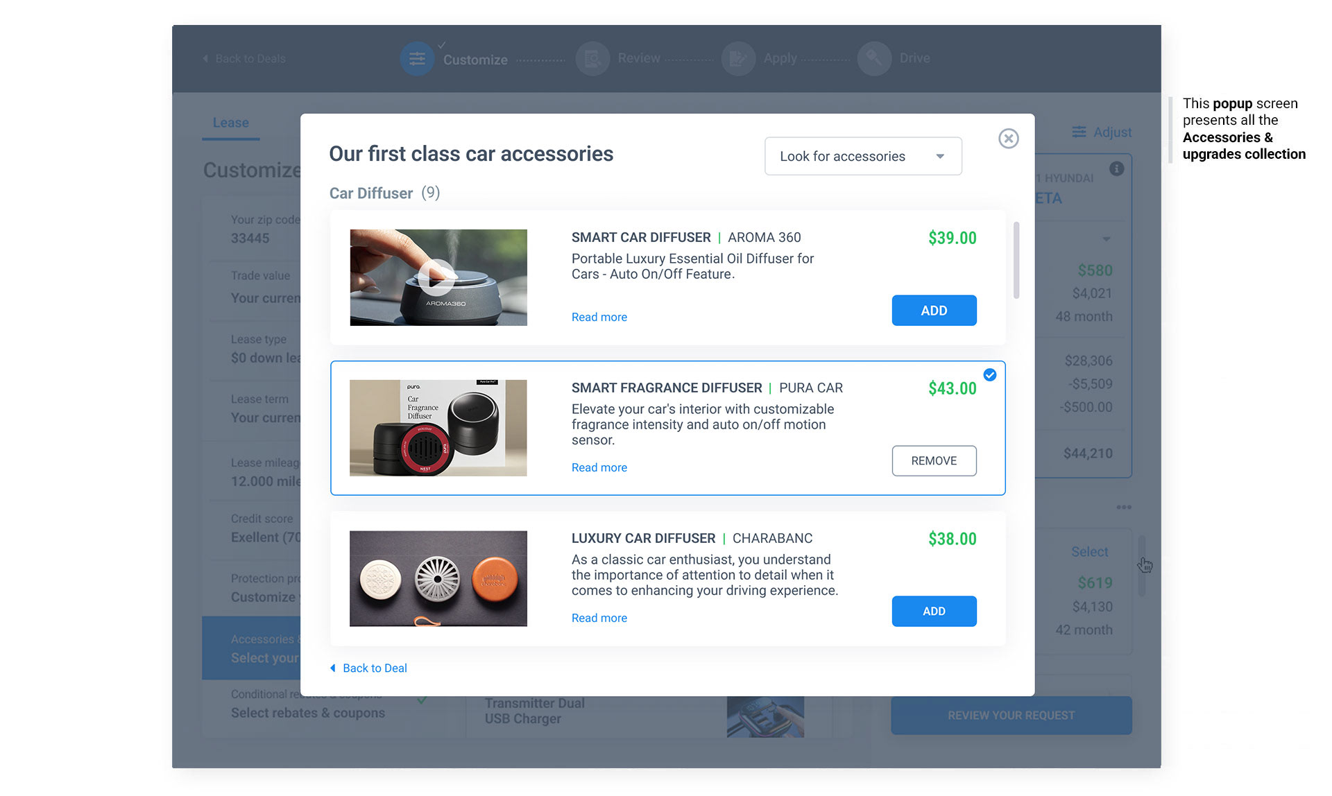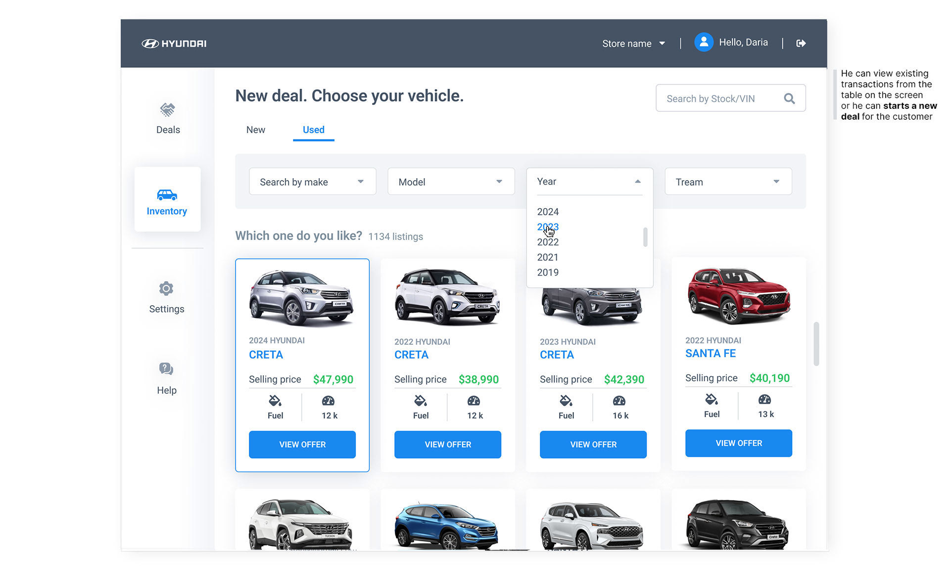 The first step was to make screens for tablet format, in order to allow the salesperson at the car dealership
